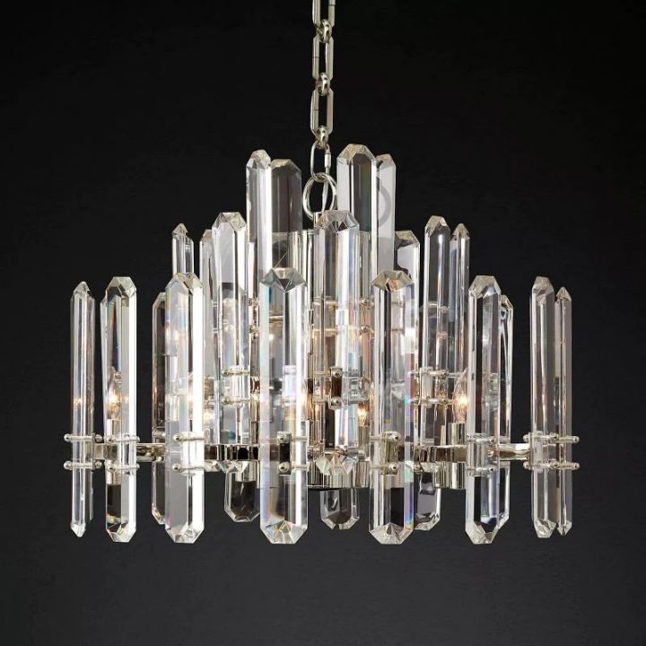 | In this collection, the designer has paired ultra-clear glass with a solid brass frame. The crystal refracts light inward and outward, making your living room or dinning room even more gorgeous and dynamic. |