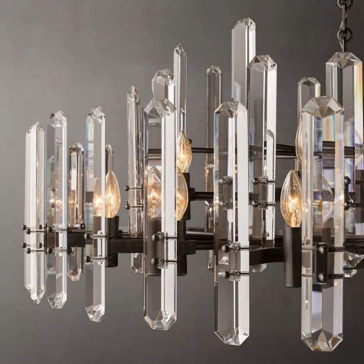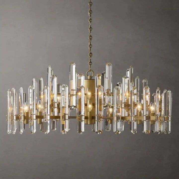 | In this collection, the designer has paired ultra-clear glass with a solid brass frame. The crystal refracts light inward and outward, making your living room or dinning room even more gorgeous and dynamic. |