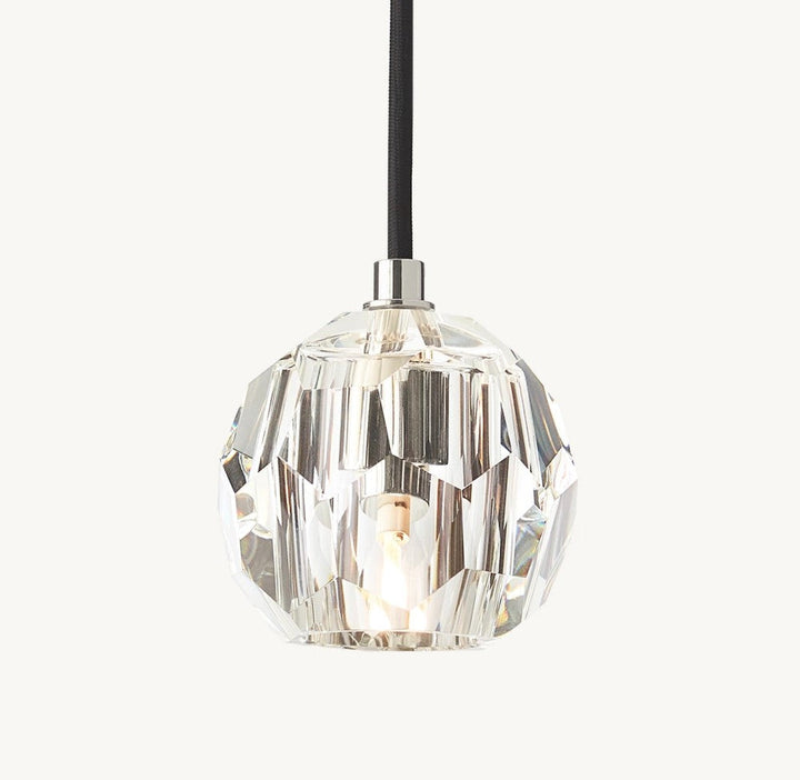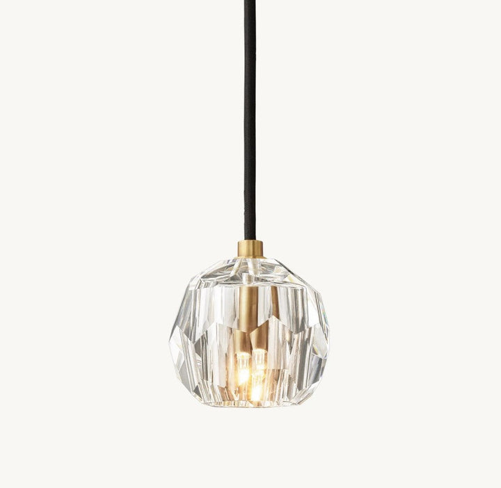 Crafted from solid brass and crystal glass, this sculptural fixture reflects a passion for refined materials and expert craftsmanship. Inspired by 1960s minimalism, each hand-polished, faceted sphere captures and refracts light with striking clarity.