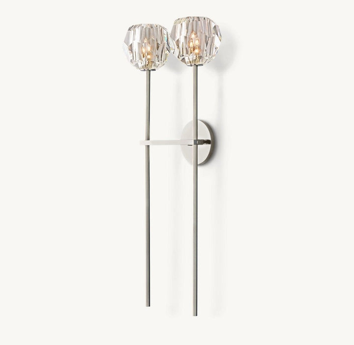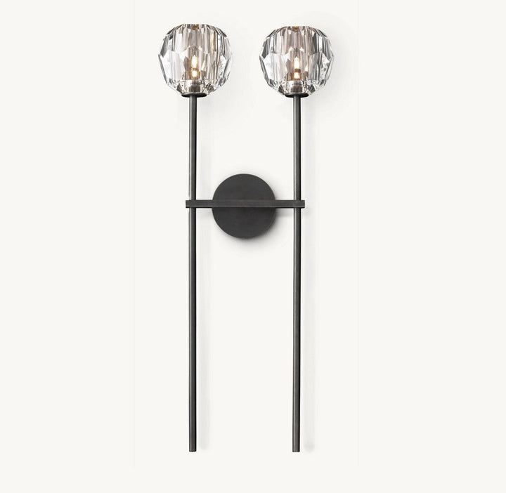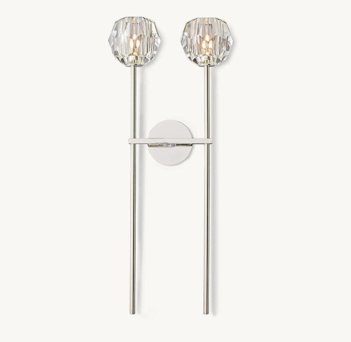 Crafted from solid brass and crystal glass, this sculptural fixture reflects a passion for refined materials and expert craftsmanship. Inspired by 1960s minimalism, each hand-polished, faceted sphere captures and refracts light with striking clarity.