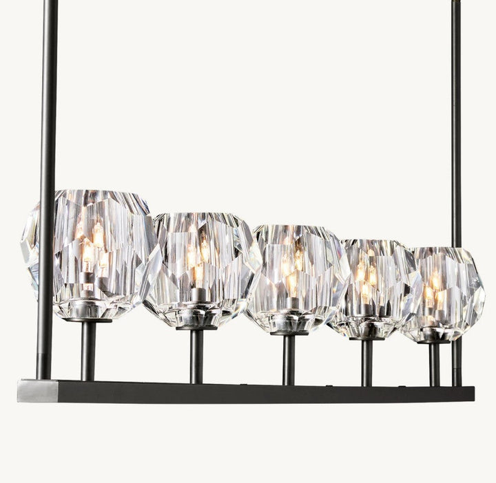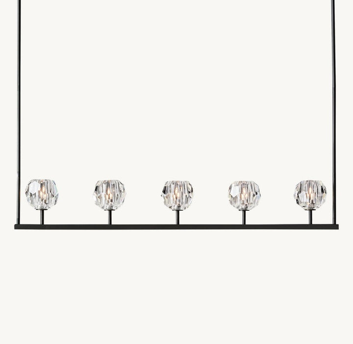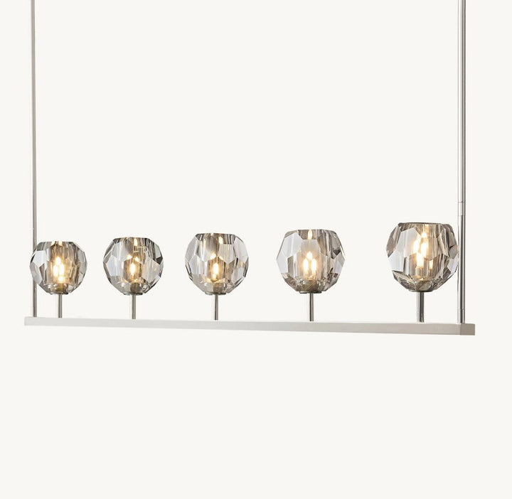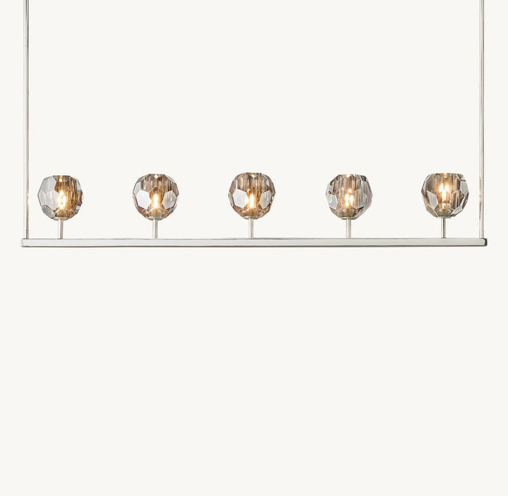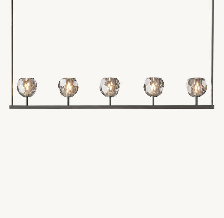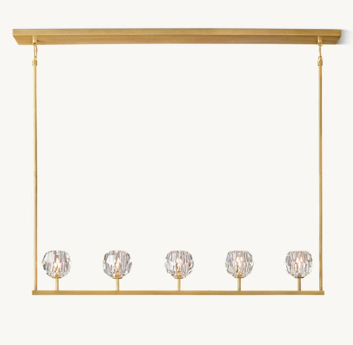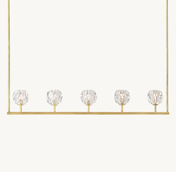 Crafted from solid brass and crystal glass, this sculptural fixture reflects a passion for refined materials and expert craftsmanship. Inspired by 1960s minimalism, each hand-polished, faceted sphere captures and refracts light with striking clarity.