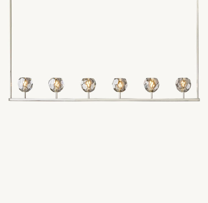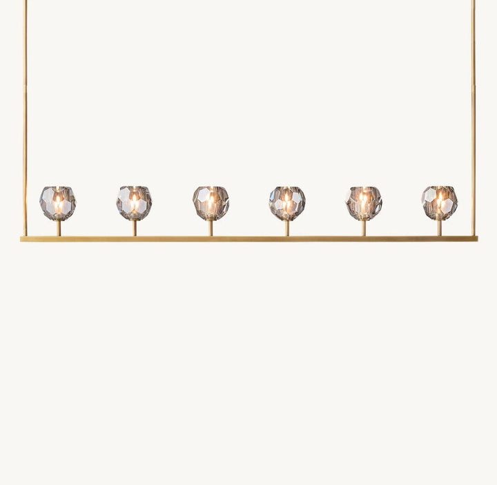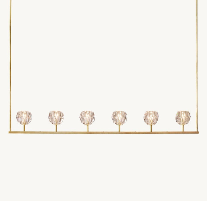 Crafted from solid brass and crystal glass, this sculptural fixture reflects a passion for refined materials and expert craftsmanship. Inspired by 1960s minimalism, each hand-polished, faceted sphere captures and refracts light with striking clarity.