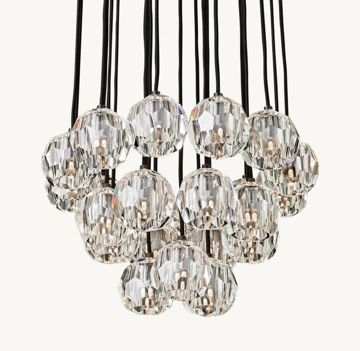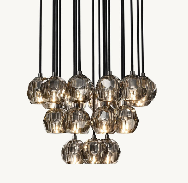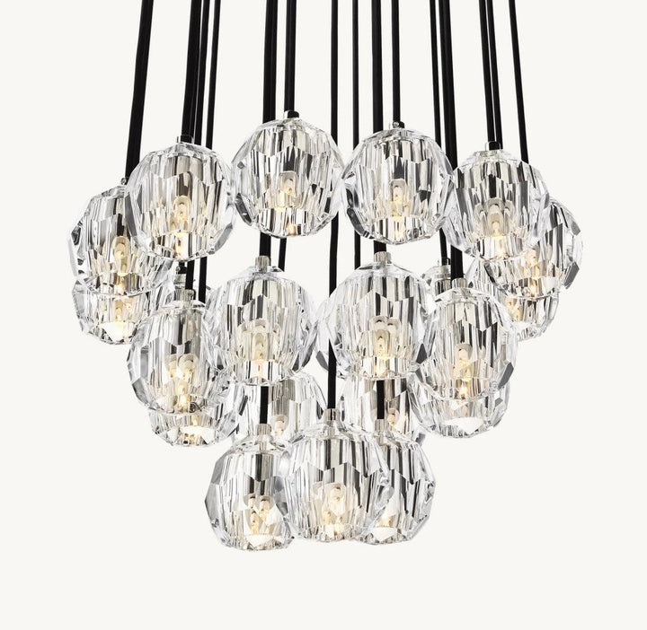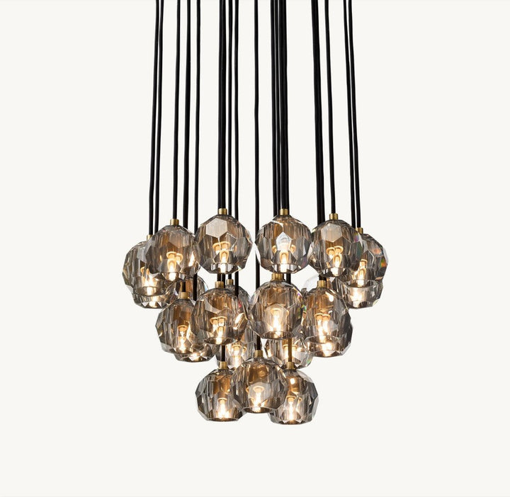 Crafted from solid brass and crystal glass, this sculptural fixture reflects a passion for refined materials and expert craftsmanship. Inspired by 1960s minimalism, each hand-polished, faceted sphere captures and refracts light with striking clarity.