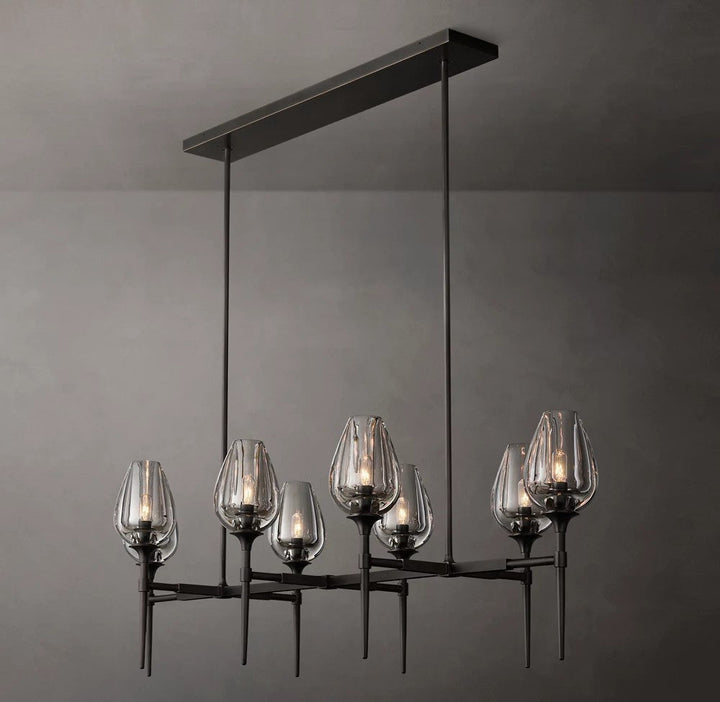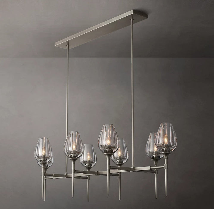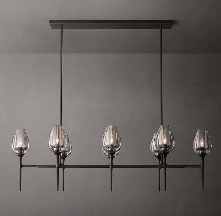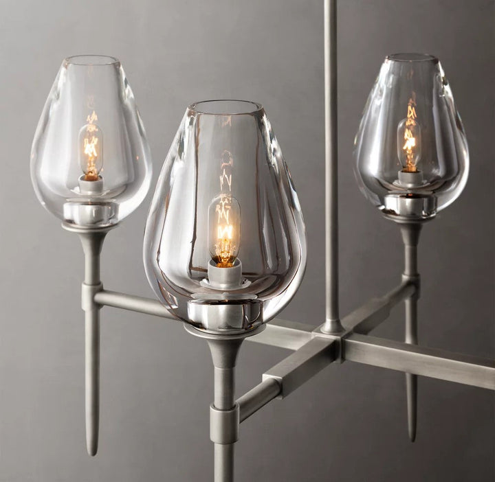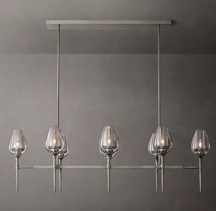 Inspired by the graceful form of a tulip in bloom, this collection pairs solid crystal shades with a refined brass frame. Each piece is lathe-carved to capture the soft contours of a petal, casting a warm, atmospheric glow.