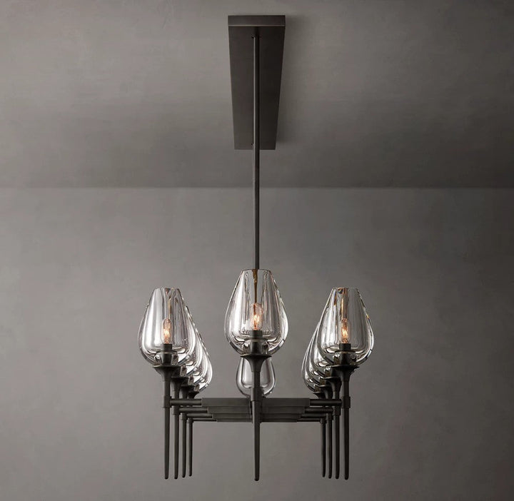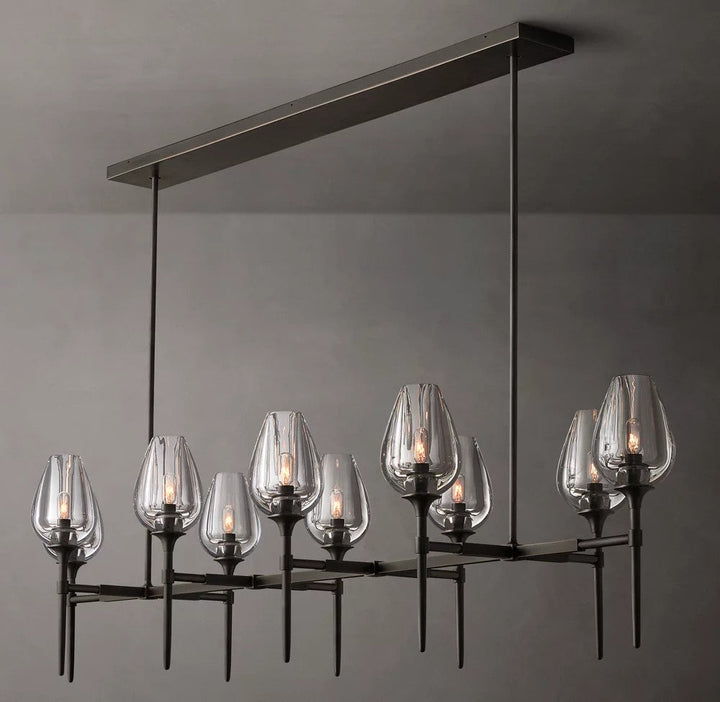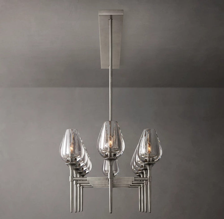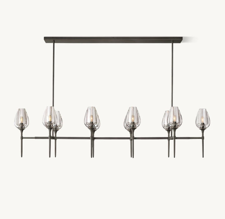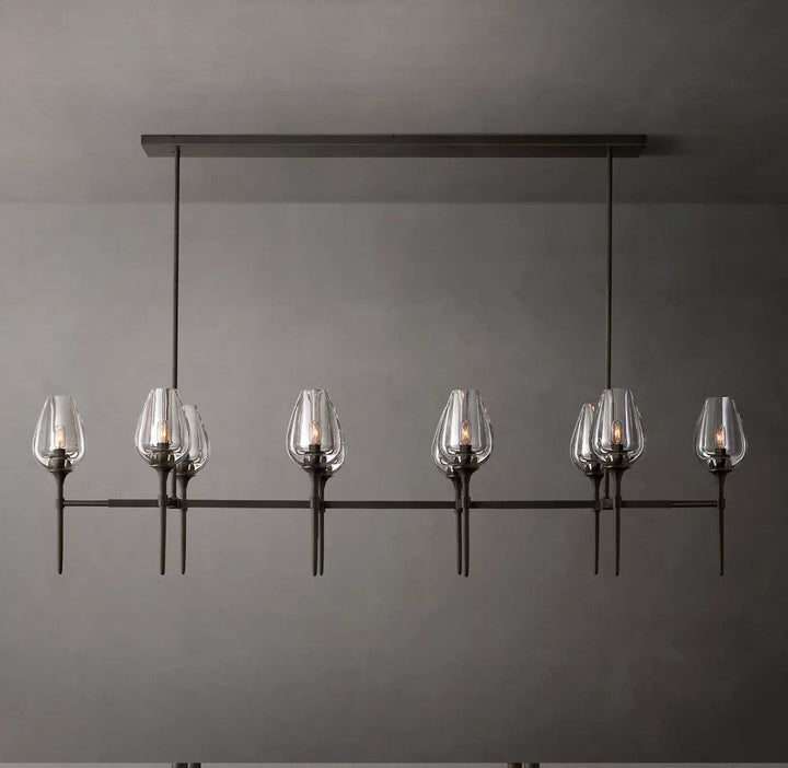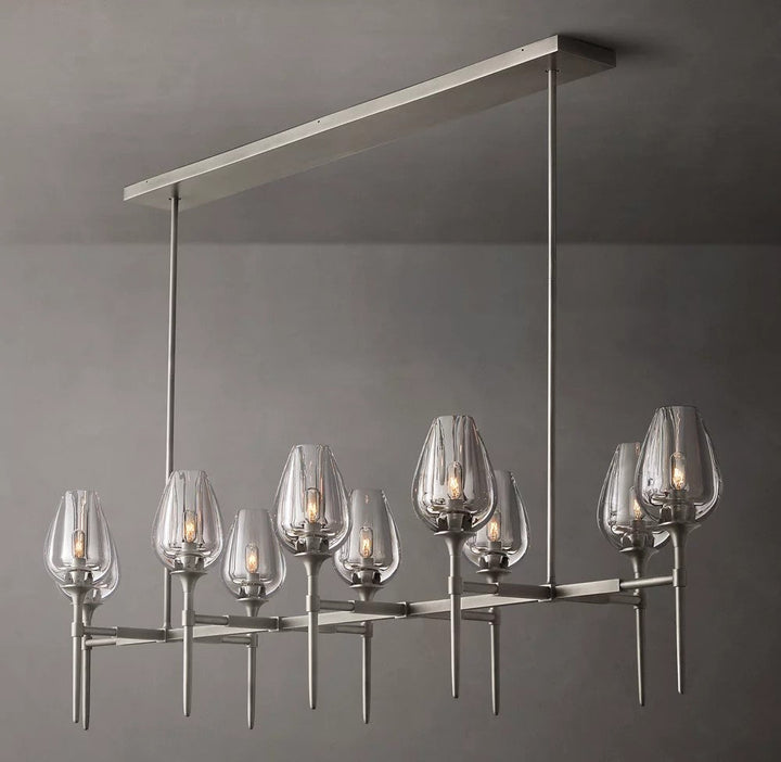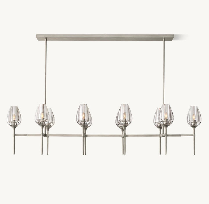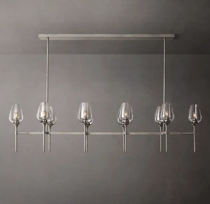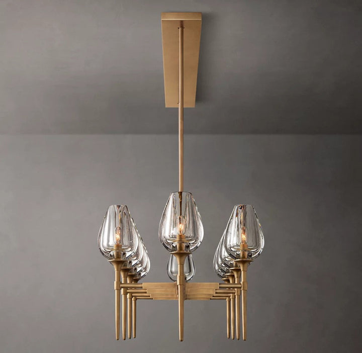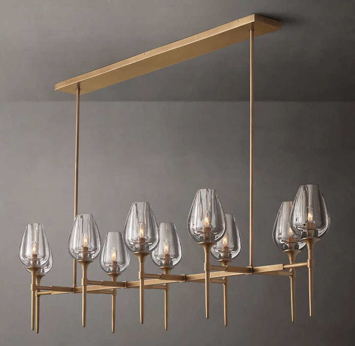 Inspired by the graceful form of a tulip in bloom, this collection pairs solid crystal shades with a refined brass frame. Each piece is lathe-carved to capture the soft contours of a petal, casting a warm, atmospheric glow.