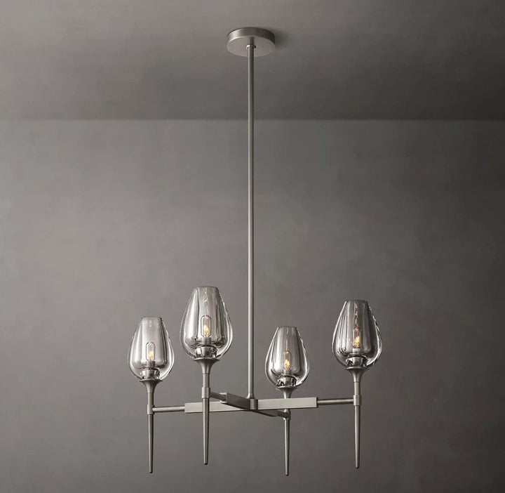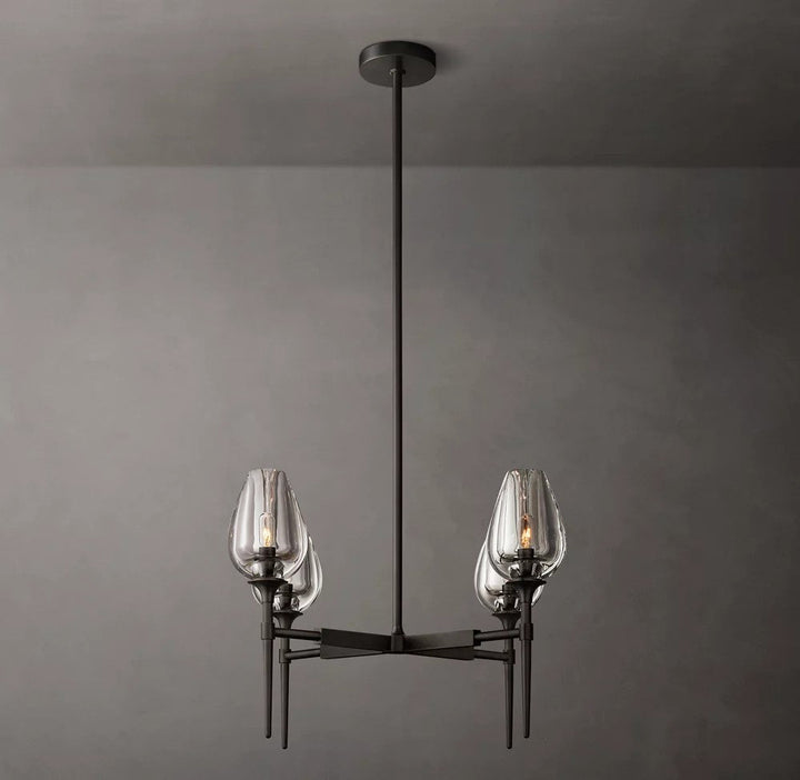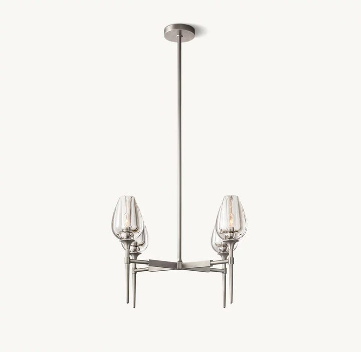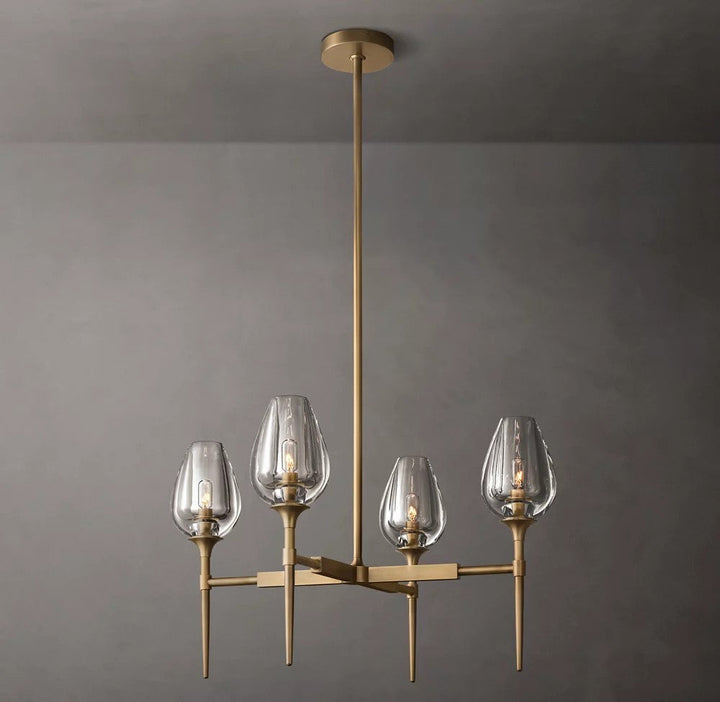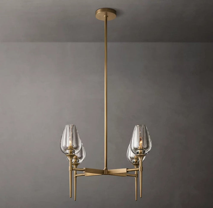 Inspired by the graceful form of a tulip in bloom, this collection pairs solid crystal shades with a refined brass frame. Each piece is lathe-carved to capture the soft contours of a petal, casting a warm, atmospheric glow.