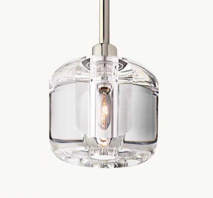 This collection combines understated elegance with refined craftsmanship. A distinctive double-metal frame holds curved K9 crystal panels, hand-polished to reflect and refract light. Smooth oval facets on each side create clear views through the crystal, lending the design a sense of relaxed sophistication.