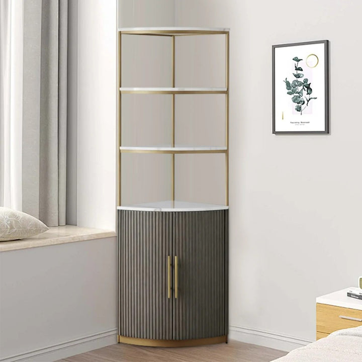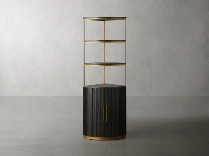 - Zinc-alloy edge pulls on each cabinet door feature a light brass finish.