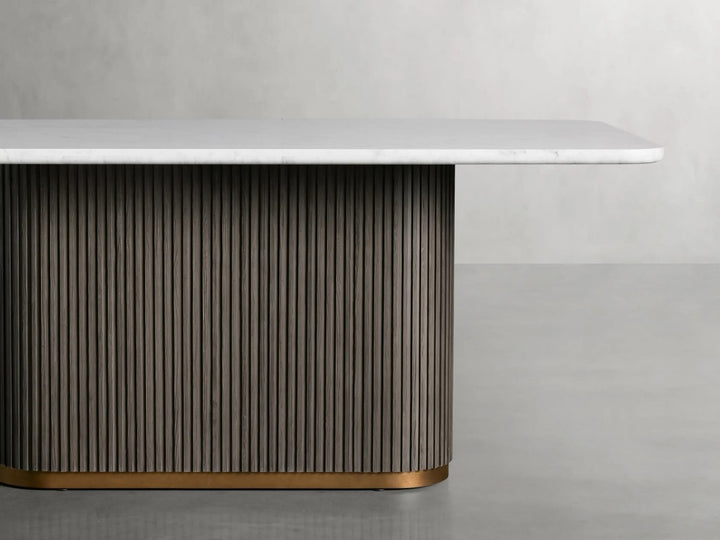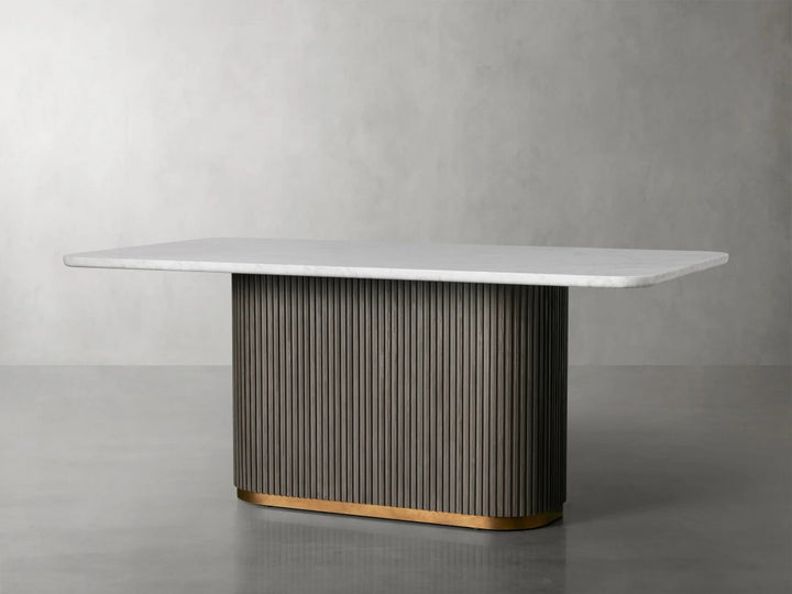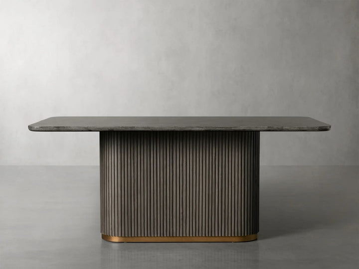 Our Fimley Collection showcases a stunning mixed-material design, inviting elevated style into any room in your home. Hand-finished pine from Finland is luxuriously complemented by a stone top, accented by light brass plinth bases and reeded oak detailing. The result is an eclectic-yet-chic collection that easily fits into any aesthetic.
