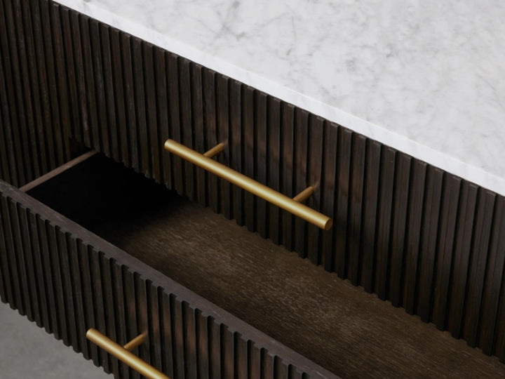 Our Fimley Collection showcases a stunning mixed-material design, inviting elevated style into any space. Hand-finished pine from Finland or white oak wood is luxuriously accented by reeded oak detailing complemented by stone tops. The result is an eclectic-yet-chic accent piece that easily fits into the aesthetic of your home from the living and dining rooms to bedrooms, office spaces, and more.