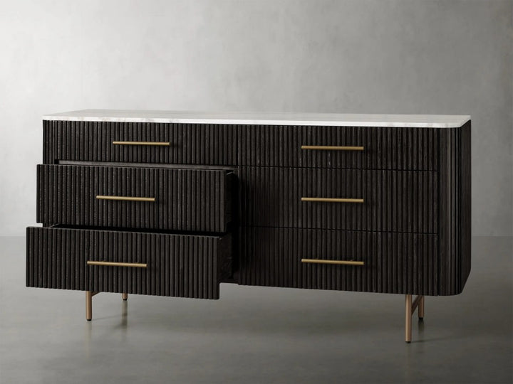 Our Fimley Collection showcases a stunning mixed-material design, inviting elevated style into any space. Hand-finished pine from Finland or white oak wood is luxuriously accented by reeded oak detailing complemented by stone tops. The result is an eclectic-yet-chic accent piece that easily fits into the aesthetic of your home from the living and dining rooms to bedrooms, office spaces, and more.