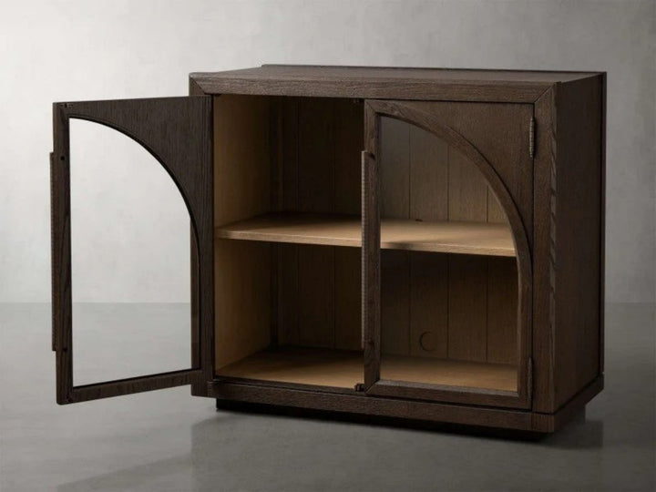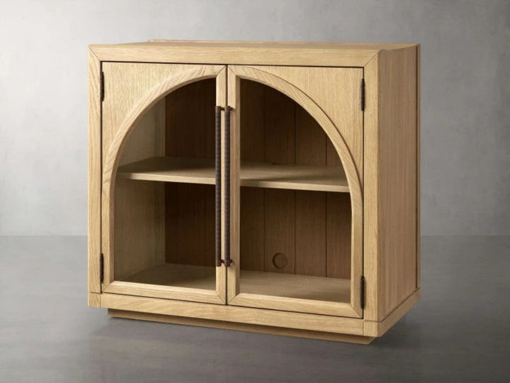 Where gentle curves meet the natural graining of oak, our artisan-crafted Heidi Collection awaits. Heidi’s generous shelves mean there’s always room to display favorite curiosities and everyday essentials.