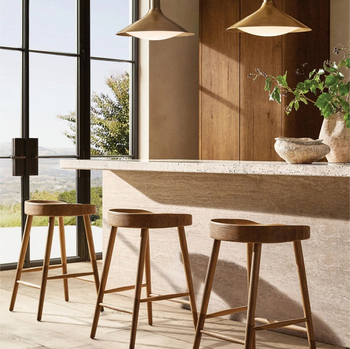 A modern take on the barn lamp, crafted in solid brass with knurled detailing and a milk glass shade that casts a warm, diffused glow.