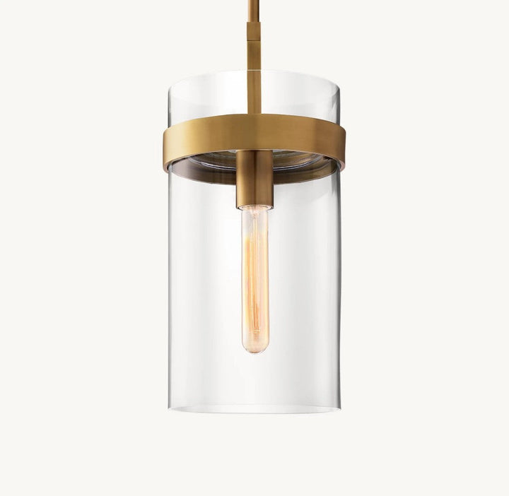 Pairs hand-blown clear glass shades with solid brass fittings, blending Art Deco elegance and modern minimalism. Warm light reflects through each finely crafted shade, creating a refined and timeless ambiance.