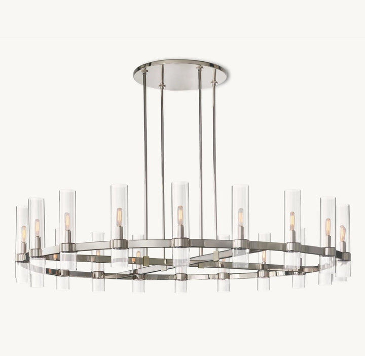 Pairs hand-blown clear glass shades with solid brass fittings, blending Art Deco elegance and modern minimalism. Warm light reflects through each finely crafted shade, creating a refined and timeless ambiance.