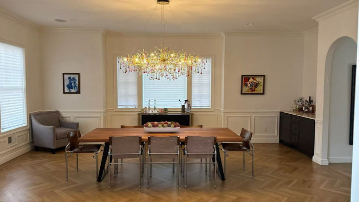 | The Ran Colorful Crystal Raindrop Branch Chandelier is a stunning and romantic addition to any home. Its intricate design of cascading glass beads from organic leaves and branches creates a magical ambience with its soft and warm light. Like dewdrops in a forest, each crystal reflects light in its colorful hues, giving your room an enchanting atmosphere. |