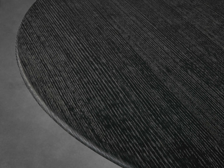 - Wood tabletops are constructed from solid oak and oak veneers complemented by either an Ebony or Chestnut finish.