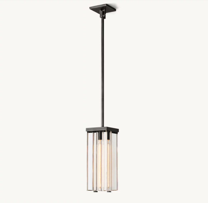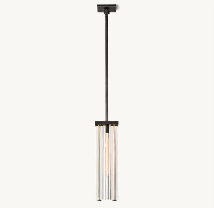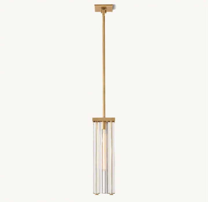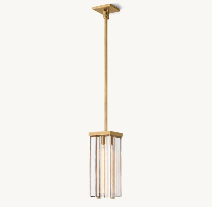 The Savoy Collection features a solid crystal block set in a brass frame. Carved with a concave channel, it reveals brilliance when lit and a weightless transparency when dark.