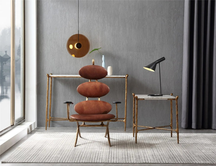 Thades High Back Brown Leather Lounge Accent Chair