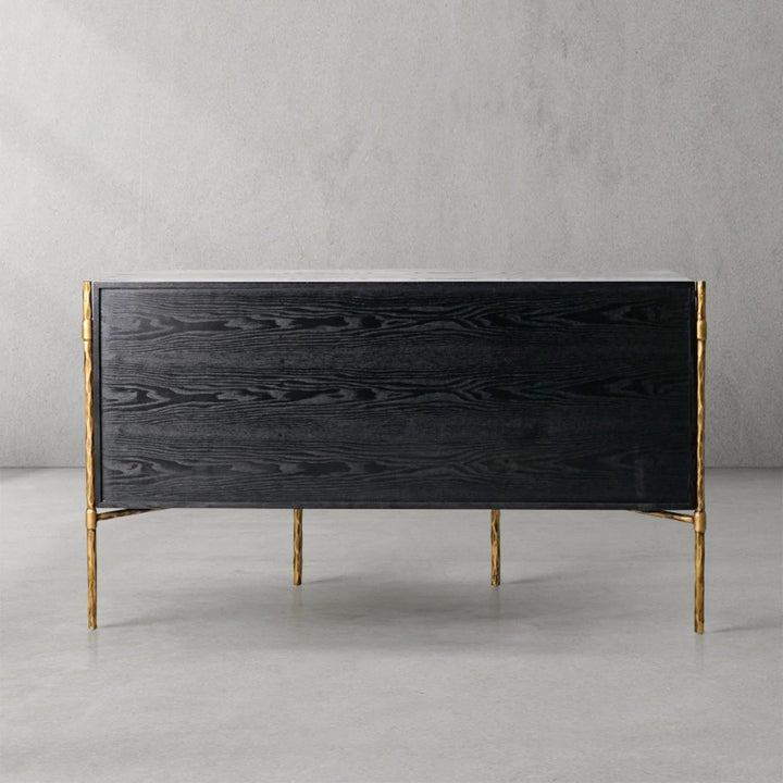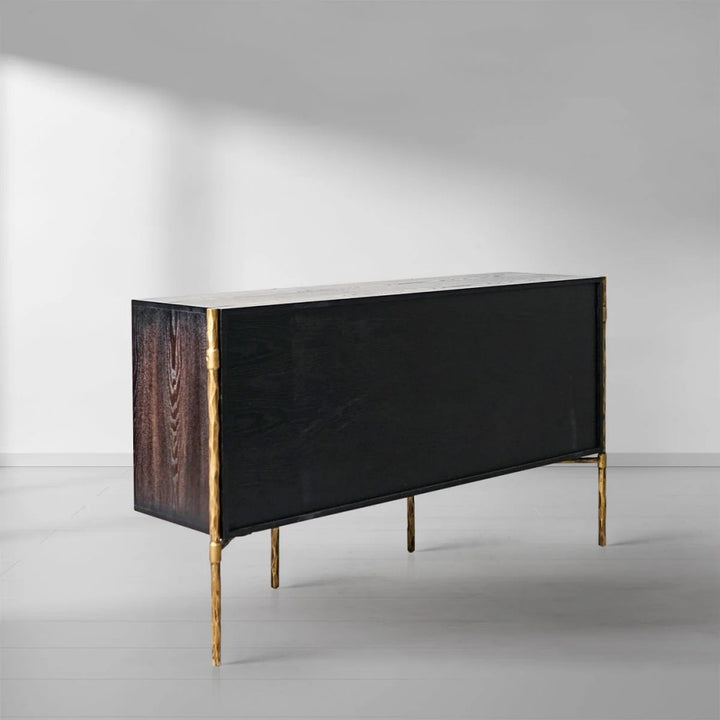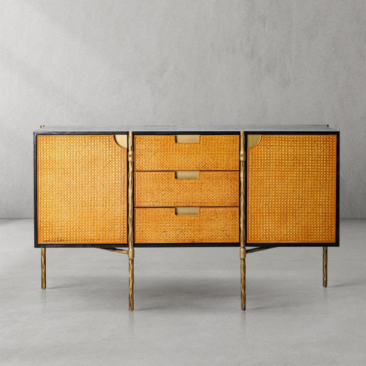 Thades side cabinet are stunning pieces that will add a stylish and sophisticated touch to your living space. Blends the rustic feel of hand-forged metal with soft organic rattan panels. Using an ancient manufacturing process, the artisans hammer the metal rods by hand to reveal a fresh, organic texture. This fully functional side cabinet stores your essentials.
