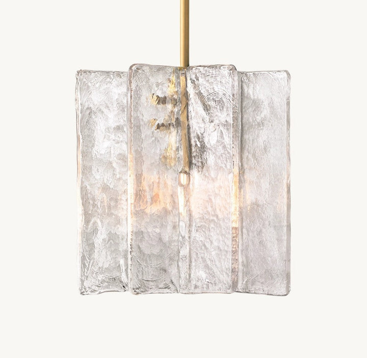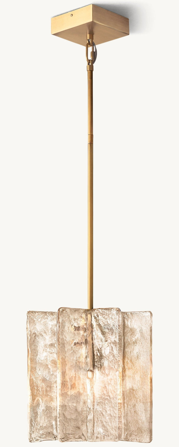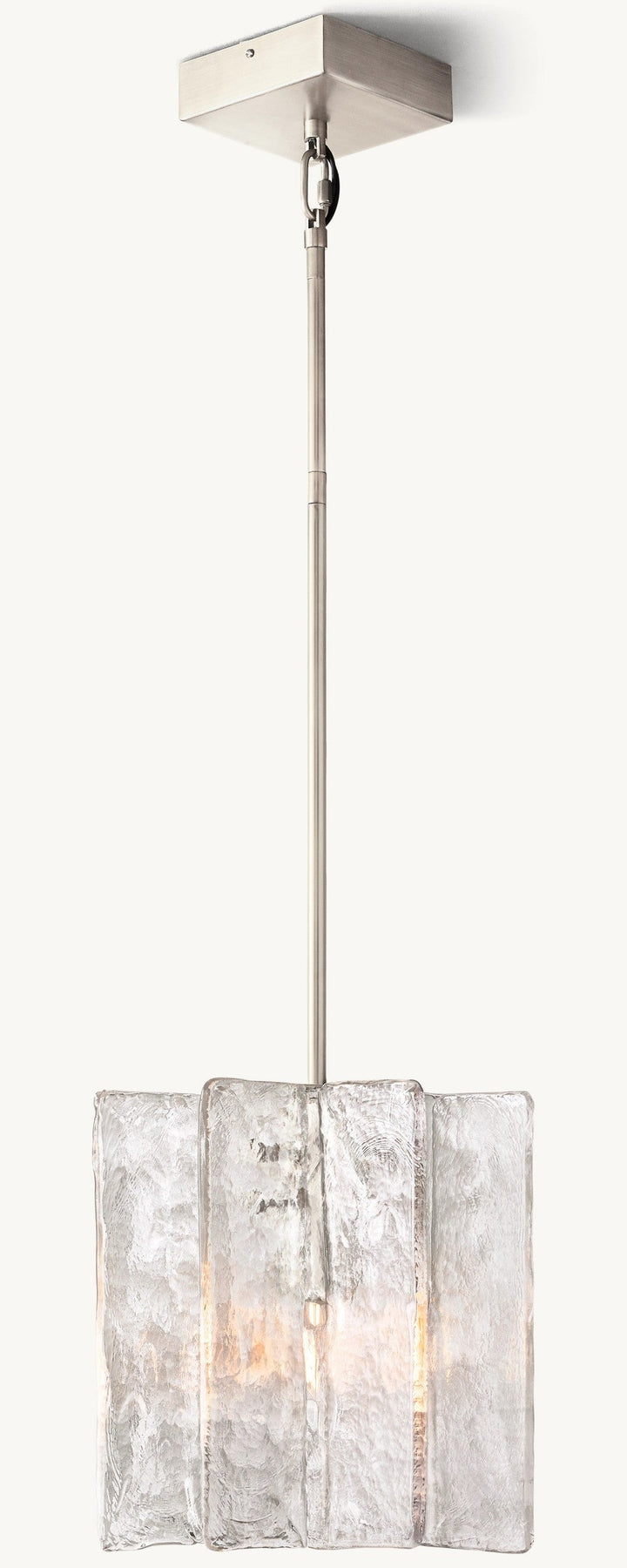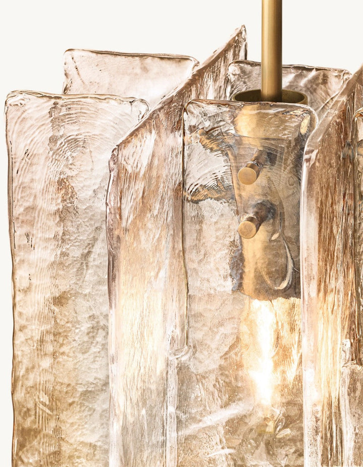 Crafted of solid cast glass, our Trama collection's interlocking planes recall the geometric precision of the midcentury International Style. A study in repetition and rhythm, the form employs open space to lend a weightless feel. Gently rounded corners on the fluid, rippled panes subtly soften the outline, while diffused light glows from within.