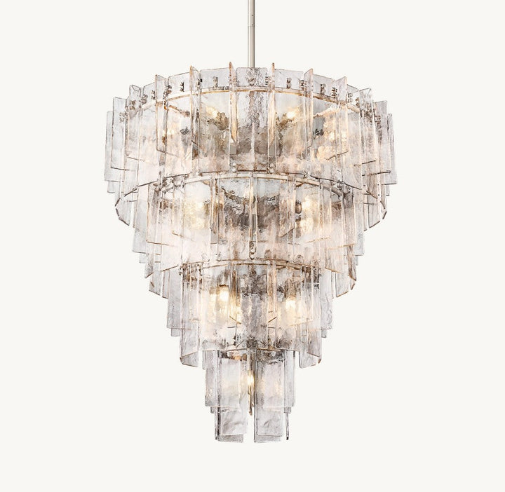 Crafted of solid cast glass, our Trama collection's interlocking planes recall the geometric precision of the midcentury International Style. A study in repetition and rhythm, the form employs open space to lend a weightless feel. Gently rounded corners on the fluid, rippled panes subtly soften the outline, while diffused light glows from within.